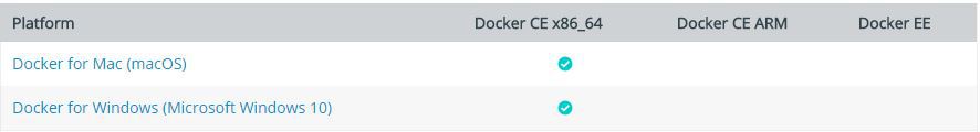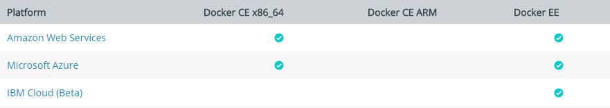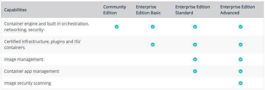Docker CE와 EE 간 비교 이미지 (출처: Docker Docs, https://docs.docker.com/install/)